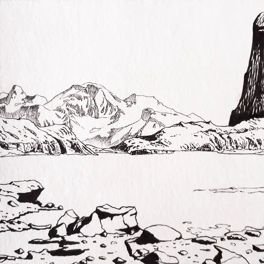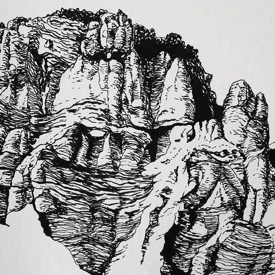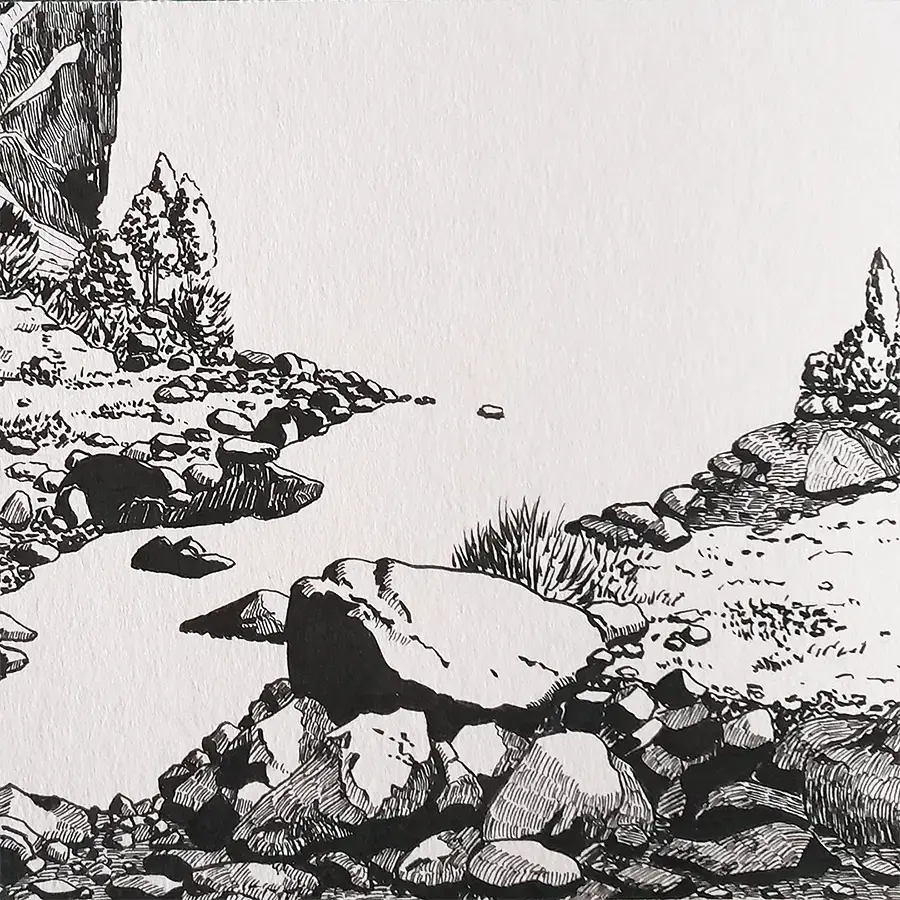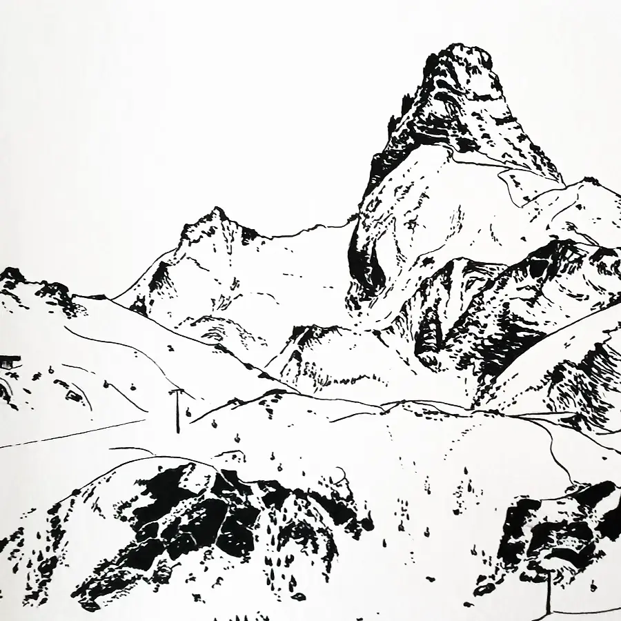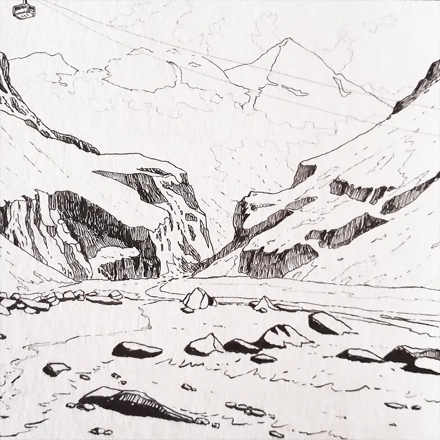 Pic de Rochebune depuis Montgenèvre – dessin au rotring (détail)